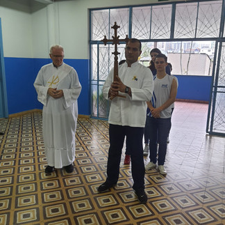 Conduzida pelo Diacono Isaías, a celebração foi um momento emocionante onde alunos, pais e docentes renderam graças a Deus por tudo que nos ajudou e nos tem permitido realizar.